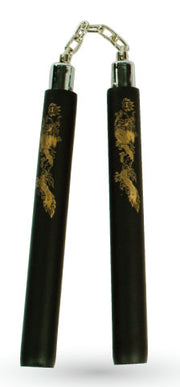 A traditional Okinawan martial arts tool consisting of two "sticks" connected at one end by a short chain or rope. The two sections of this training tool are made out of foam with a molded plastic core. The nunchaku is most widely used in martial arts such kobudo and karate, and is used as a training item, since it allows the development of quicker hand movements and improves posture.