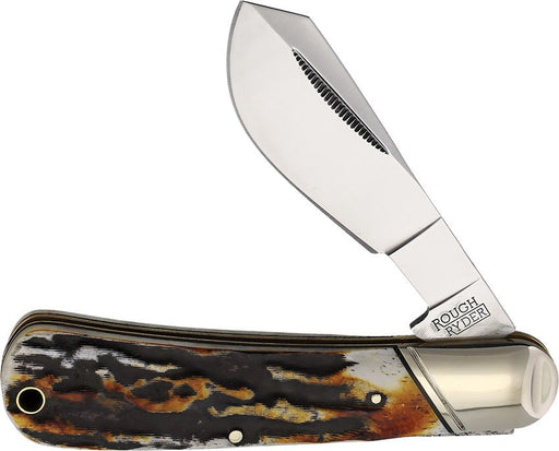 Rough RyderNo reviewsFeatures: 440A stainless steel blade. Cinnamon stag bone handle. Nickel silver pins, bolsters and shield. Lanyard hole. 2-1/4″ blade. Blade thickn...