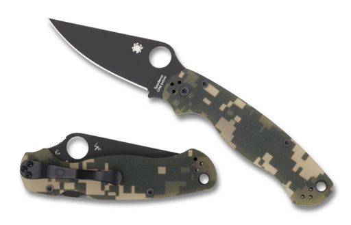 SpydercoThe Spyderco Para Military 2 Digital Camouflage Black Blade G-10 has several changes over the classic version. The G-10 handle is narrowed at the e...