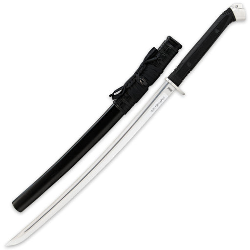 United CutleryUnited's new Honshu Boshin Wakizashi has a sleek, modern elegance to it. The incredibly sharp 22 1/2" 1060 high carbon steel blade has a satin fini...