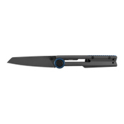 This sci-fi-inspired knife is sleek, extremely modern, and comfortably lightweight. The Decibel's slim, linear design is emphasized by dark matte-gray, titanium-carbo-nitride coating on both blade and handle. The dark-gray finish is offset by an aluminum pivot collar and backspacer, both anodized in bright blue. The Decibel's blade is quality 8Cr13MoV stainless steel. And even though the handle is stainless steel, too, the discreet Decibel weighs in at just 2.7 ounces. One thing that lightens the knife's weight—and adds style—is the handle cutout. This "window" in the handle lets you look inside and reveals the Kershaw logo, cleverly tucked away on the inside of the back handle. The reversible pocketclip has its own decorative cutouts, echoing the lines of the knife. The Decibel is a fully manual knife, but can be opened one-handed using the thumb stud. With its lighter weight, the Decibel is an easy folder to drop in your pocket before heading out of the house. You might even forget it's there—until you need it. Then it's ready to get the job done. The reverse tanto blade is as functional as it is eye-catching. and unlike a standard drop-point blade, the Decibel's tip is positioned downward, letting you make piercing cuts with ease. It's a perfect feature for opening packages, letters, and other everyday items. When you want an ideal balance between ultra-modern looks, comfortable weight, and top performance, the Decibel speaks volumes. Â- Manual opening