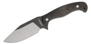 The Black Leaf Knife was designed to create a hybrid tactical and field knife that reflects the best of both worlds. This is a knife that can perform field and basic survival tasks while its balance, lightness, agility, and multi-grip handle configuration lend themselves to combat use. The Micarta handle and forward guard lock the hand in securely in both a forward and reverse grip, while the choil allows for close in detail work for bushcraft and carving tasks. A slight thumb ramp and jimping provide extra stability and traction. The Black Leaf Knife comes with a sturdy kydex belt sheath, so you’re ready for combat, camping, skinning game, or basic bushcraft tasks in the field.