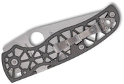 The brainchild of Spyderco co-founder Sal Glesser, the Edgerati translates his deep interest in high-performance sports cars into a remarkable knife design. Its pierced, geometric handle was inspired by the frame of the legendary “birdcage” Maserati, which revolutionized sports car design. True to that spirit, the Edgerati’s handle scales are painstakingly machined from solid aircraft-grade aluminum and hardcoat anodized to create an exceptional blend of strength, light weight, non-slip texture, and dramatic style. They also provide a view of the knife’s streamlined Compression Lock® mechanism, which consists of a stainless steel lock bar nested into a machined pocket in the obverse-side scale. The knife’s straight-spined, full-flat-ground blade is crafted from CPM® S30V® particle metallurgy stainless steel. Available in both PlainEdge™ and SpyderEdge™ configurations, it features a textured index-finger choil that allows a forward-positioned grip for enhanced control. The Edgerati’s broad-based pocket clip is reversible for left or right-side tip-up carry and complements the blade’s fully accessible Trademark Round Hole™ to allow swift, positive deployment with either hand.