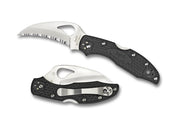 Full serrations across the blade's length measurably increase its cutting capacity for separating webbing, cardboard and coarse or fibrous material. The hollow-ground blade features jimping at both spine and choil for additional tactile dexterity and control over the cutting edge. Its black fiberglass handle is Bi-Directionally Textured-? for slip-resistance in any hand position with an ambidextrous tip/up, tip/down steel pocket clip. Nested inside the handle are full length skeletonized steel liners, increasing rigidity and strength without adding bulk or weight. Screw-together handle construction allows for adjustment and a lanyard hole located at the handle's edge accommodates secondary retention through attachment of a lanyard or thong.