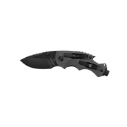 The Kershaw Shuffle has proven so popular that we've made a tricked-out Shuffle, too. The new Shuffle DIY, in its garage-appropriate black-and-gray coloring, features a bit driver and two screwdriver bits, plus a keychain ring—along with the Shuffle’s usual handy features. As always, the Shuffle is a compact knife and is equipped with a shorter, but wider blade. The blade is made of quality stainless steel known for its ability to hold an edge, strength, and hardness. Black-oxide blade coating helps protect the blade. The handle’s finger contours fit the hand comfortably. A liner lock secures the Shuffle's blade open in use, but closes easily when its tasks are done. And yes, the bottlecap lifter, built into the back of the knife, is still there. Because DIY is hard. As a utility knife, a work knife, or just a great multi-function pocketknife—and now with a bit driver, bits, and jump ring—the Shuffle DIY is the right choice.
