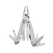 This multi-tool features tools that are accessible while the tool is in its folded or closed position, mimicking the functionality of a pocket knife.