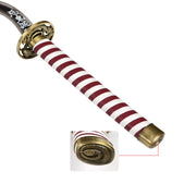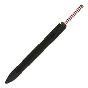 Our carefully crafted real sword is inspired by Obanai's katana, including the colored carbon steel blade (toshin), it's wavy design akin to a snake and it's iconic dual snake shaped guard (tsuba). This metal replica of the Obanai katana is 101 cm (40 in) long and comes with a leather sheath (saya). The blade is blunted and an ideal home decoration or cosplay photoshoot accessory.