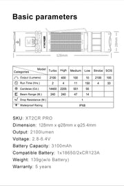 ·Maximum output up to 2100 lumen, beam reach up to 262 yards (240m)